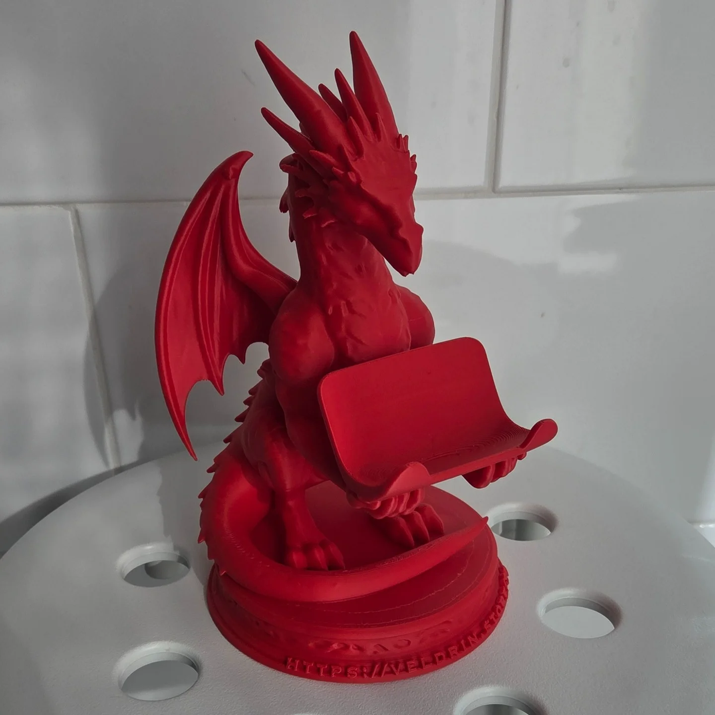 Bring fantasy to your desk or gaming setup with this 3D-printed dragon stand, designed to hold your game controller or smartphone with style and stability. The detailed dragon sculpture serves both as a functional holder and a striking decorative figure.